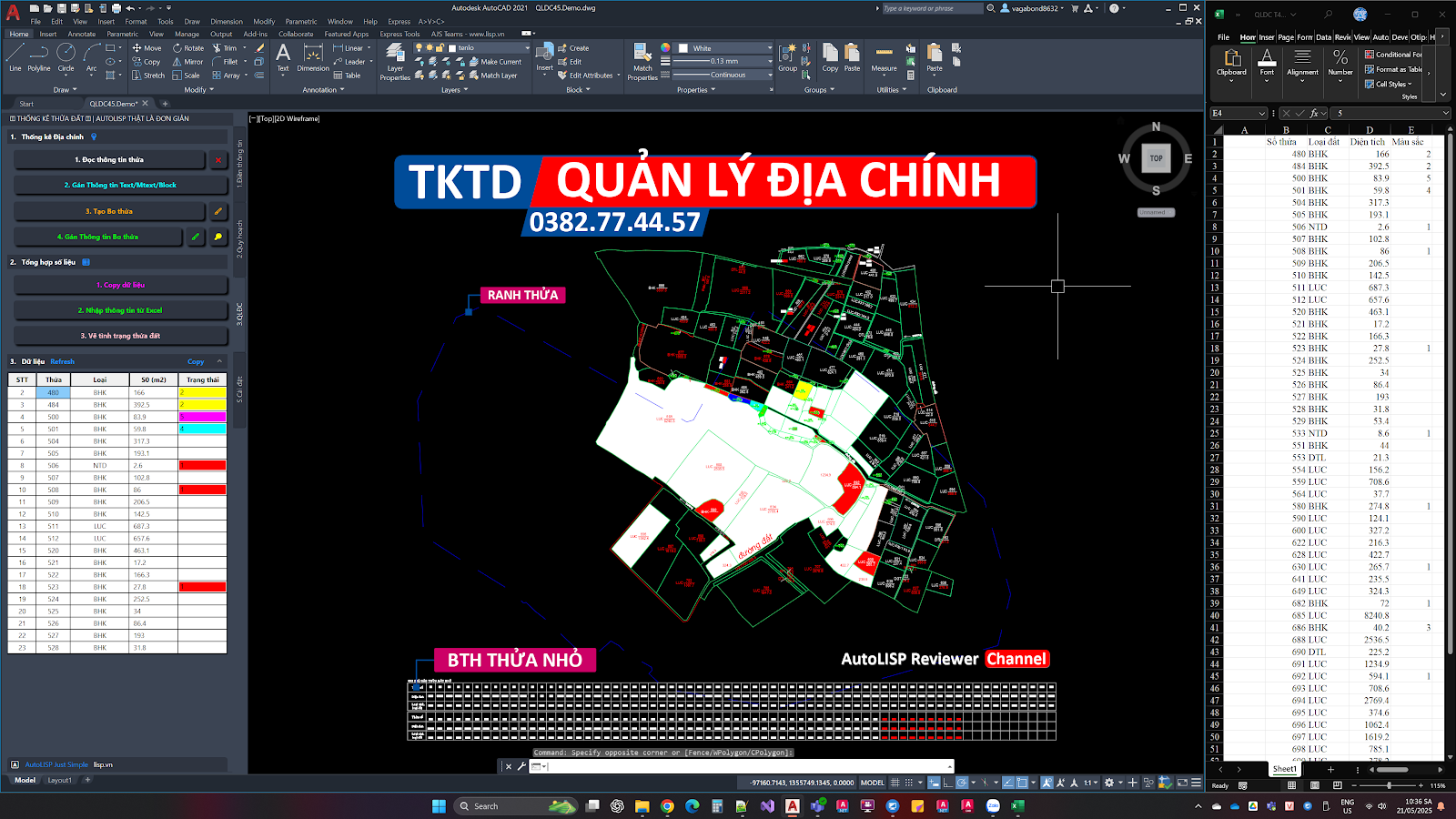 Chức năng Quản lý địa chính là một trong những phần lõi quan trọng nhất của ứng dụng TKTD – Thống kê thửa đất, được phát triển bởi nhóm AutoLISP Thật là đơn giản. Mục tiêu chính là chuẩn hóa, khai thác và trực quan hóa thông tin địa chính từ bản vẽ CAD một cách nhanh chóng, chính xác và có tổ chức.